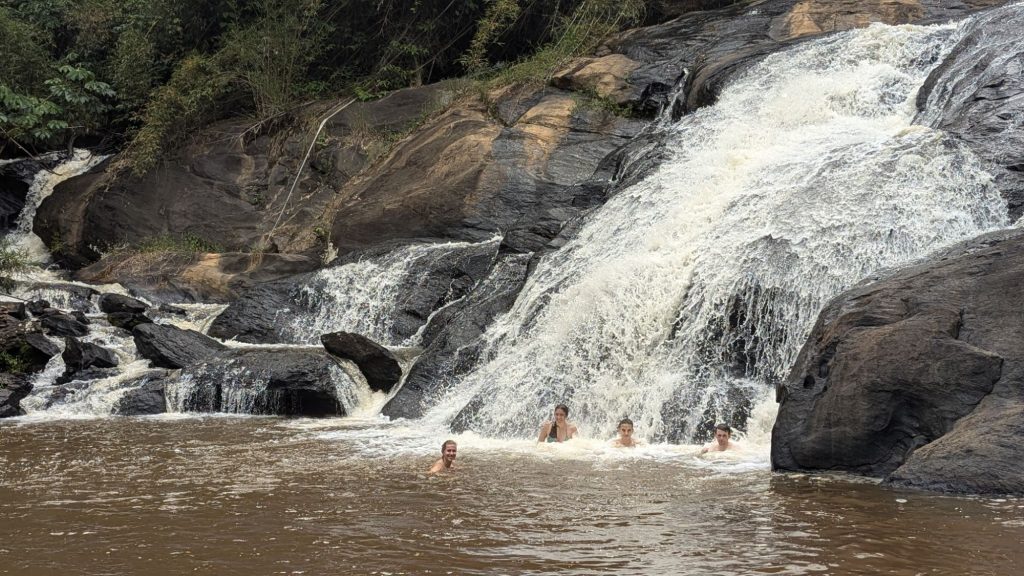 Am Freitag habe ich dann kurz für 1-2h in der Nursery gearbeitet (die Säckchen für die Setzlinge mit Erde befüllen), aber nach dem Mittagessen am Freitag haben wir schon Wochenende, also war das meine einzige Arbeit der Woche. Das Highlight der ersten Woche war dann am Wochenende, und zwar ein Besuch am Wasserfall. Dort mussten wir etwa 30 Minuten hinfahren, aber das müssen wir egal wo wir hin wollen immer. Es hat sich auf jeden Fall gelohnt, denn dort konnten wir baden =).