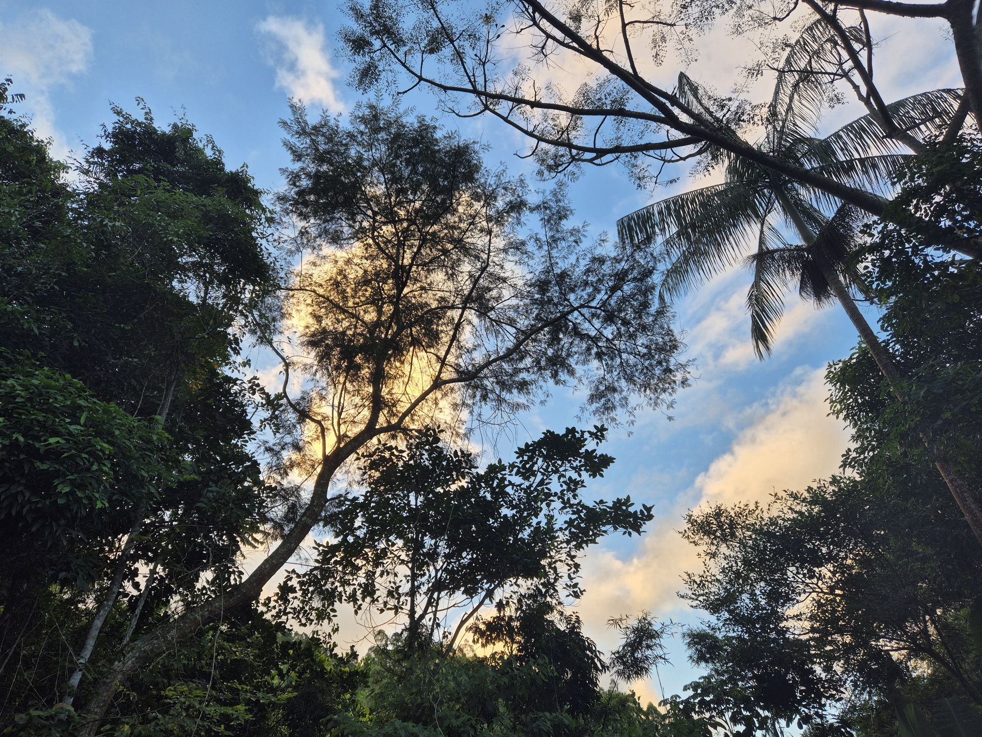 Die Tätigkeit die mich durch alle 10 Monate begleitet ist die Arbeit in der Nursery. Hier müssen die kleinen Bäumchen das ganze Jahr gepflegt werden. Aktuell entferne ich viele Raupen und ihre Eier von den Blättern. Auch wenn das natürlich ist, wollen wir ja, dass alle Setzlinge überleben, damit sie später möglichst schnell den Regenwald zurückbringen können. Zudem müssen die Setzlinge so beschnitten werden, dass sie möglichts schnell an Höhe gewinnen und ihre Kraft weniger in Seitentriebe stecken. Allgemein ist die Nursery ein schöner Ort zum Arbeiten, da es mitten im Grünen ist und wir auch noch direkt mit den Pflanzen arbeiten. Dort fühle ich mich sehr verbunden mit der Natur. Außerdem ist die Arbeit relativ meditativ und einfach.