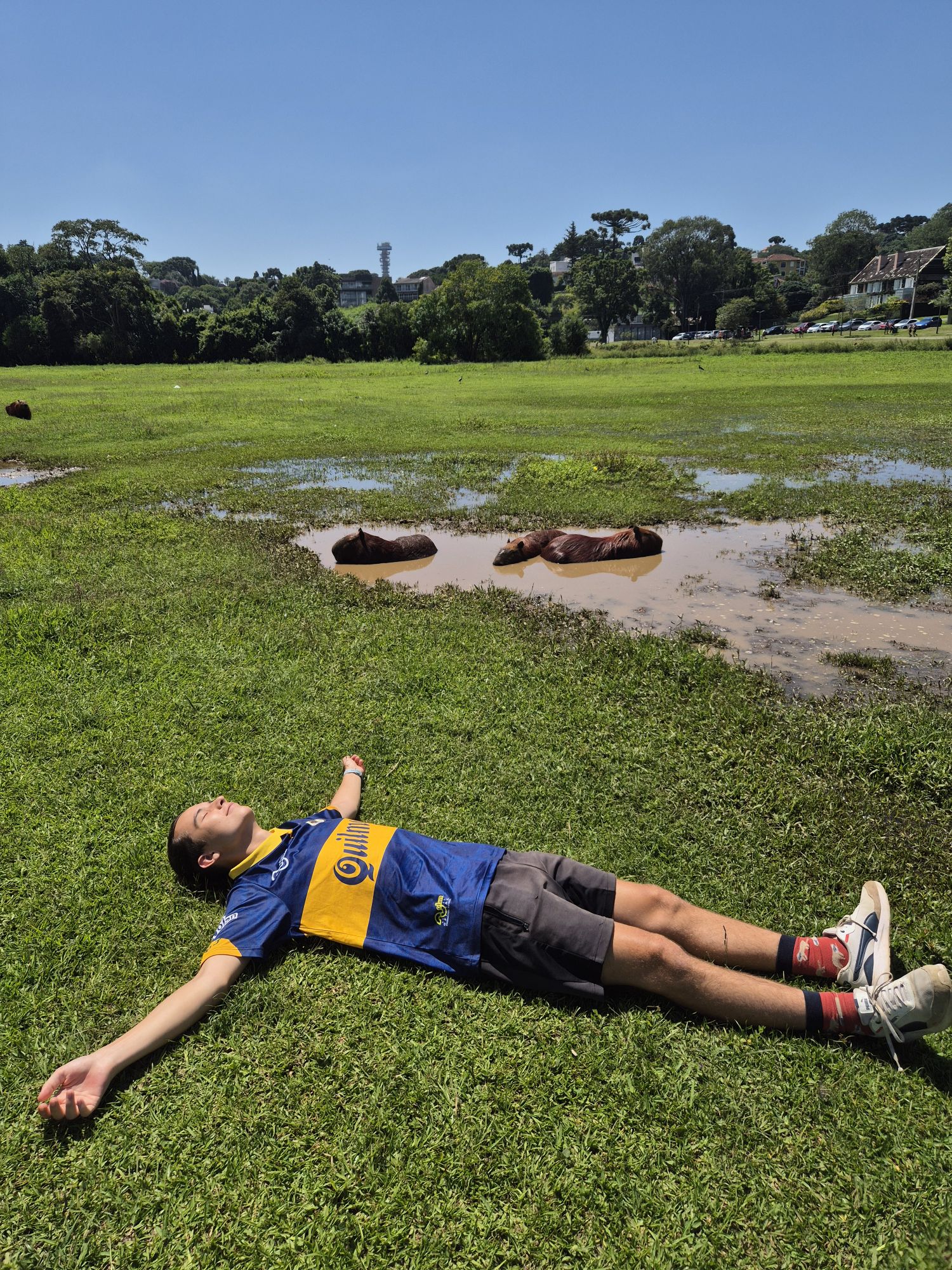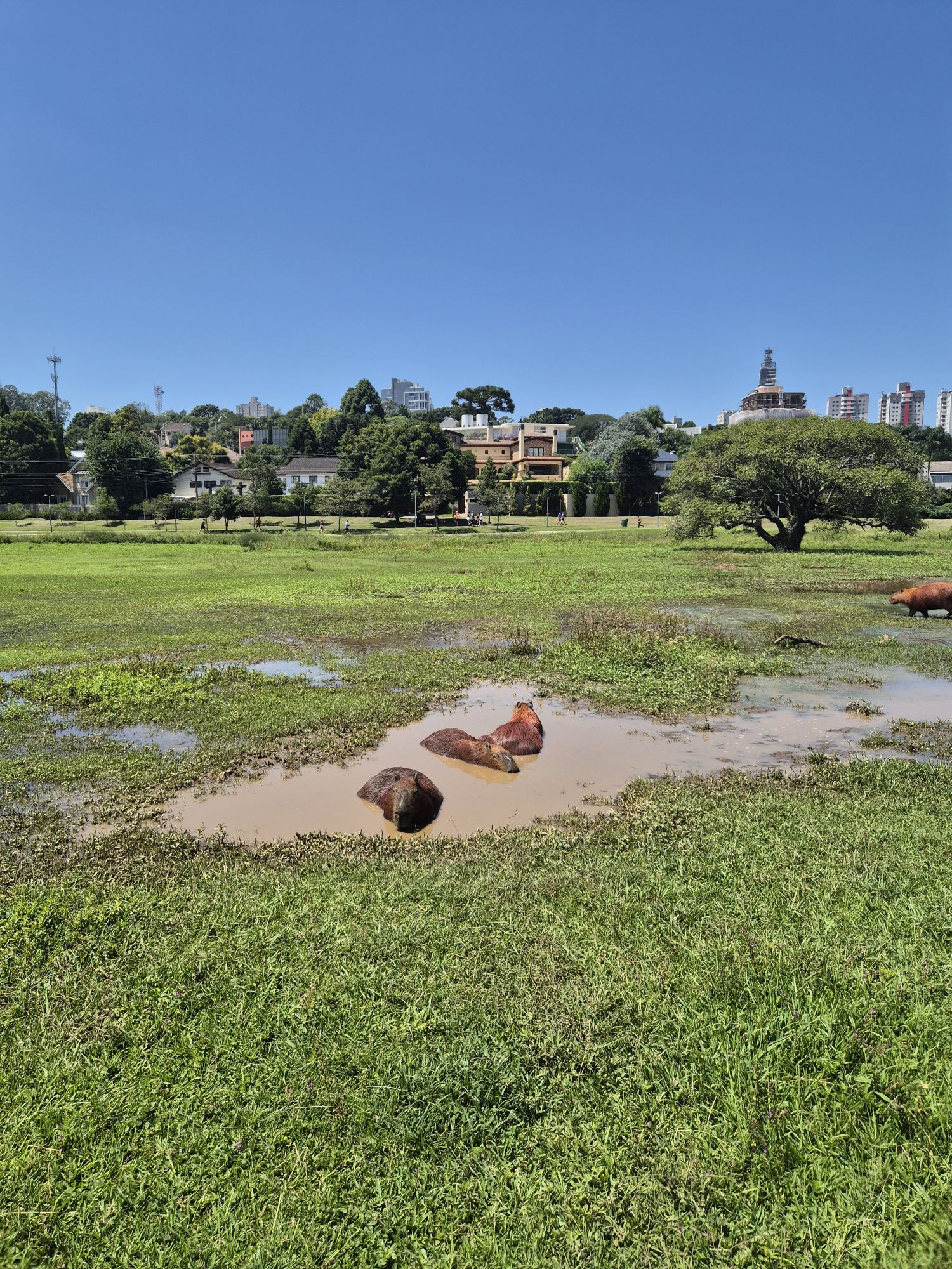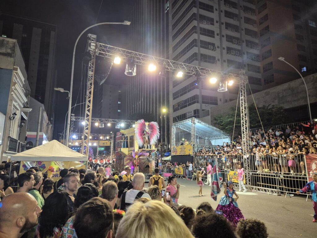 Wir waren auf jeden Fall alle sehr froh, den Karneval noch miterlebt zu haben, denn als wir die Daten für das Seminar bekommen haben haben wir befürchtet wir würden das ganz verpassen. Und somit war es auch kein Problem, dass wir nicht die absolute Ekstase in Rio erlebt haben, sondern nur das kleine Karnevälchen in Curitiba. Wobei das dem auch nicht gerecht wird, denn wir haben dort so viele Samba-Tanzende, -Lehrende und Veranstaltende gesehen, die sich so lange mit so viel Engagement auf diese Tage vorbereitet haben, um sich stolz zu präsentieren. Und davor, was sie auf die Beine gestellt haben, muss ich auf jeden den Hut ziehen, denn es war alles mit so viel Liebe gemacht. Die Kostüme waren nicht nur schön und elegant sondern haben auch eine Botschaft vermittelt, das Tanzen wirkte bei allen Tanzenden mühelos und frei, als ob sie das 24/7 durchtanzen könnten, die riesigen Wägen waren toll beschmückt und haben schon in der Ferne gestrahlt, als sie grade so am Ende des Zuges sichtbar wurden. Alles in allem war ich sehr beeindruckt, zu sehen was hier jährlich in jeder Stadt Brasiliens los ist. In unseren wenigen Tagen in Curitiba haben wir außerdem noch Capybaras gesehen!!! Und zwar in einem ganz „normalen“ Stadtpark.