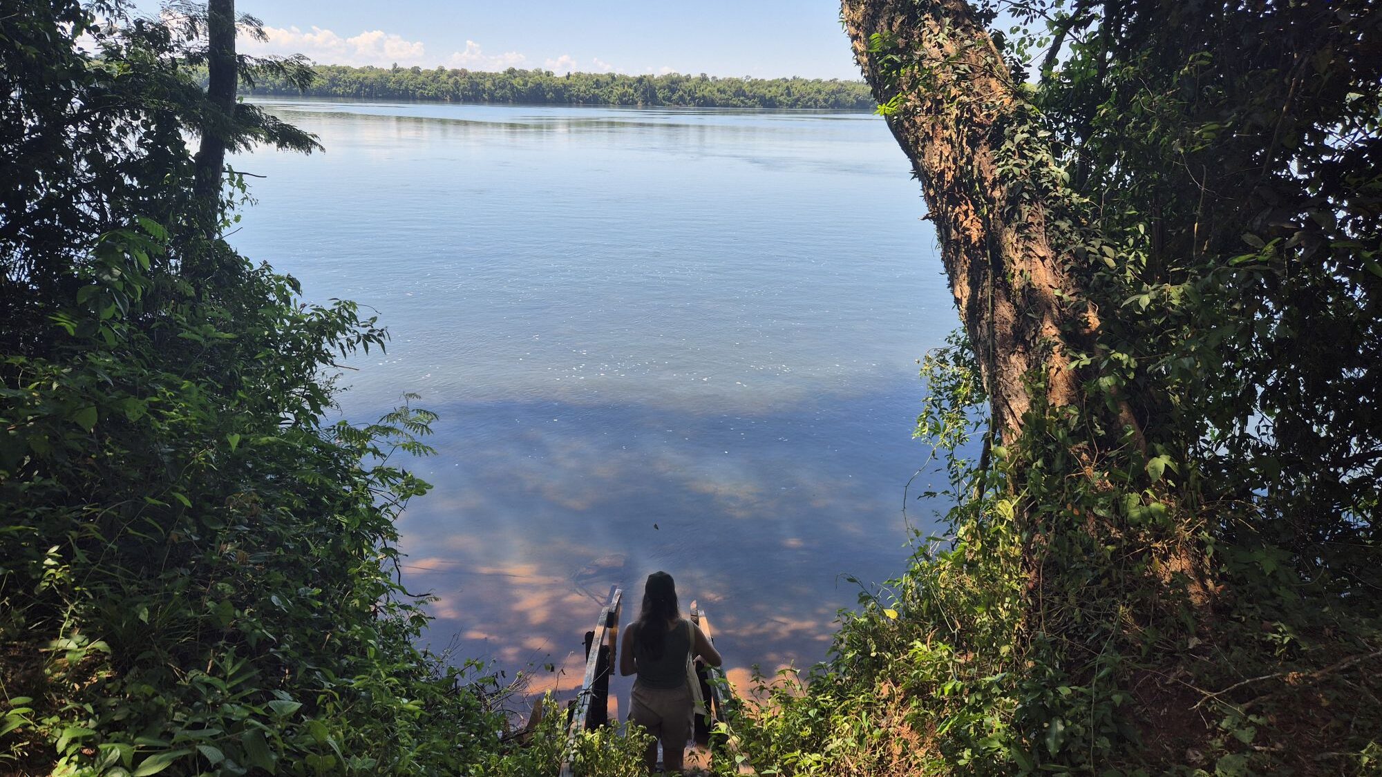 Insgesamt sind wir 5 Nächte dort geblieben. Deshalb haben wir uns entschieden am ersten Tag nach unserer Ankunft erstmal die Wasserfälle von der brasilianischen Seite auf eigene Faust zu erkunden. Dafür sind wir erstmal etwas flussaufwärts zu einem Häuschen mit Terasse gelaufen. Dabei haben wir uns die ganze Zeit gewundert warum hier niemand ist, obwohl in den Bussen und sonst wo alles voll ist. Aber dadurch, dass man von dort nicht die Wasserfälle sehen kann, waren wir die einzigen dort und konnten kurz in einer Hängematte ausruhen :).