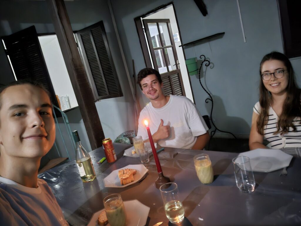 Die Tage danach waren erstmal wieder sehr entspannt. Wir haben viel im Airbnb gechillt und sind ab und zu zum Strand gegangen. Was man halt zwischen den Jahren so macht ;). Ich habe auch im Videoanruf mit meiner Familie einmal Gesellschaftspiele gespielt und das hat auch Spaß gemacht und war ein guter Zeitvertreib. Am 31.12 haben wir dann erstmal noch Plätzchen gebacken. Oder es zumindestens versucht. Naja, wir sind uns nicht sicher was genau das Problem war, der Ofen, das Mehl, das Vanilleextrakt, die Margarine oder wir? Danach war es dann auch schon Zeit für Silvester. Eine Tradition in Brasilien ist es, in der Silvesternacht weiß zu tragen und nur farbige Unterwäsche zu tragen, wobei die Farbe die Wünsche für das neue Jahr symbolisiert. Blau ist Weiheit, Gelb Reichtum, Grün Hoffnung, Rot Liebe und Leidenschaft und Weiß ist Frieden. So haben wir uns alle weiße Kleidung besorgt und sind zwischen 20 und 21 Uhr losgegangen, da wir noch etwas essen wollten und dachten, wir könnten schonmal ein bisschen in die Feierlichkeiten reingucken. Aber falsch gedacht, wir haben unseren Augen kaum getraut als wir gesehen haben, dass niemand auf den Strassen ist und der Strand aussieht wie eine Partylocation von gestern.