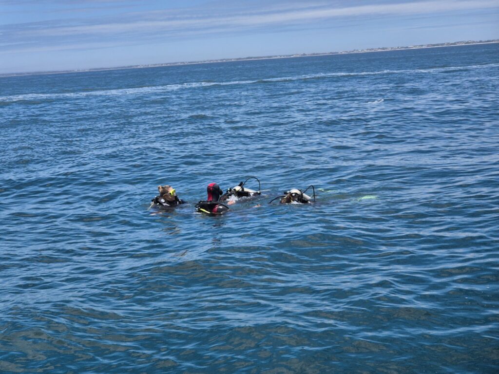 Das nächste große Highlight kam dann 2-3 Tage später: Wir waren tauchen, so richtig tauchen mit Sauerstoffflasche, Neoprenanzug und Flossen. Dafür gibt es einige Anbieter, die Anfängerkurse machen. Da wir alle keinerlei Erfahrung hatten, war das dann genau das Richtige für uns. Wir sind dann auf einem Boot mit Kapitän, Tauchlehrer, Fotografin, 3 anderen Tauchbegeisterten und noch einer Tauchlehrerin vor die Küste einer nahen Insel gefahren. Dort wurde uns unsere Ausrüstung genau erklärt und die Zeichensprache, die man vom Tauchen kennt, beigebracht. Als die Theorie geschafft war und die anderen Taucher schon das erste Mal im Wasser waren (die waren schon erfahren), waren wir an der Reihe. Unser Tauchlehrer konnte sich immer nur um 2 Lehrlinge kümmern, deshalb bin ich zunächst auf dem Boot geblieben und habe zugesehen.